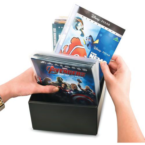 | Intitulé du produit | Boîte de rangement pour DVD CD et Blu-Ray, Coloris: Noir, Largeur: 160 mm, Profondeur: 120 mm |