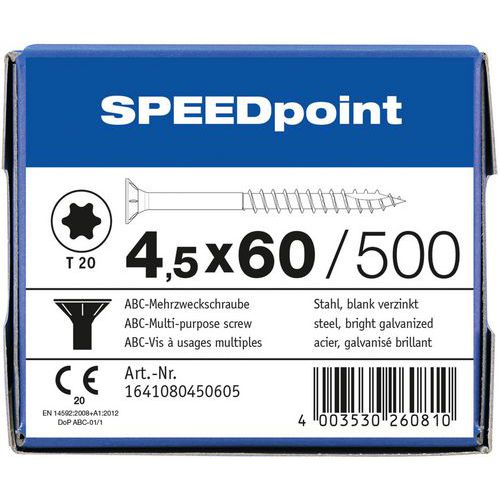 Boite de vis multi-usage à tête fraisée TXØ de 3,5 à 5 mm - SpeedPoint
