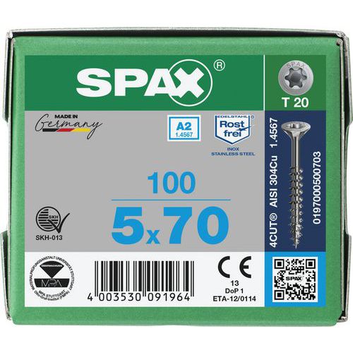 Boite de vis universelles pour extérieur à tête fraisée TX Ø - Spax