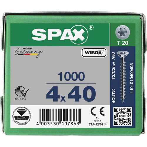 | Intitulé du produit | Boite de vis universelles T-Star Plus à tête fraisée TX Ø, Matériau: Acier, Filetage Ø: 4 mm |