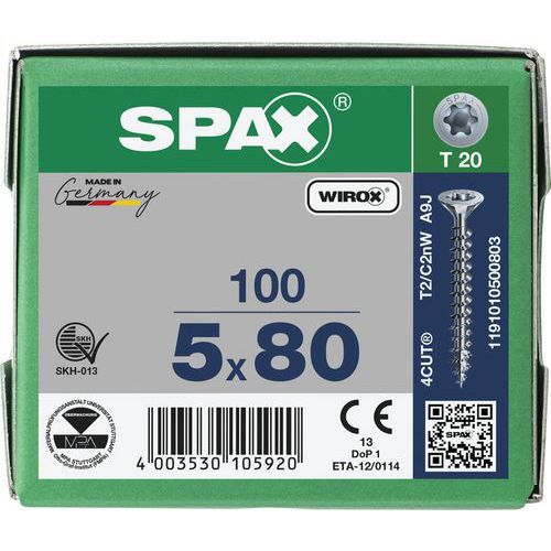 Boite de 100 vis universelles T-Star Plus à tête fraisée TX Ø - Spax