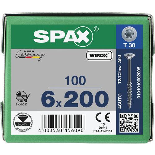 Boite de 100 vis universelles T-Star Plus à tête fraisée TX Ø - Spax