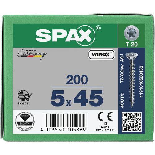 Boite de 200 vis universelles T-Star Plus à tête fraisée TX Ø - Spax