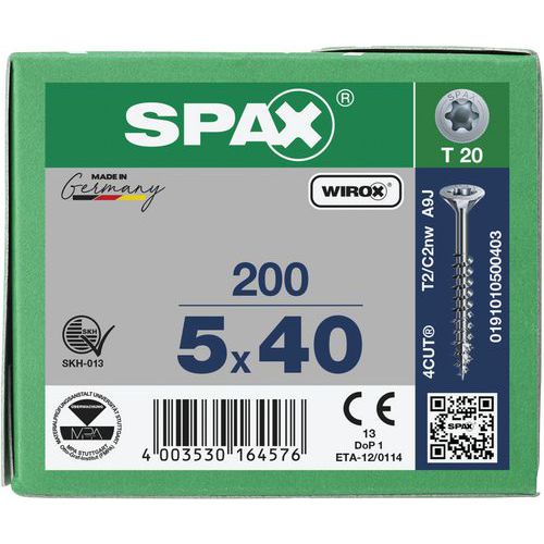 Boite de 200 vis universelles T-Star Plus à tête fraisée TX Ø - Spax
