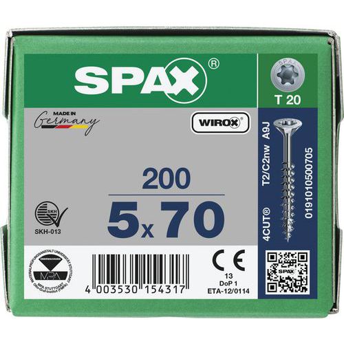 Boite de 200 vis universelles T-Star Plus à tête fraisée TX Ø - Spax
