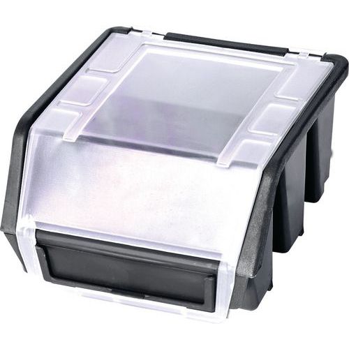 Boîtes en plastique en cinq variantes de couleur avec un support intégré d'étiquettes distinctives pour une meilleure clarté du matériel stocké sur le devant de la boîte.
