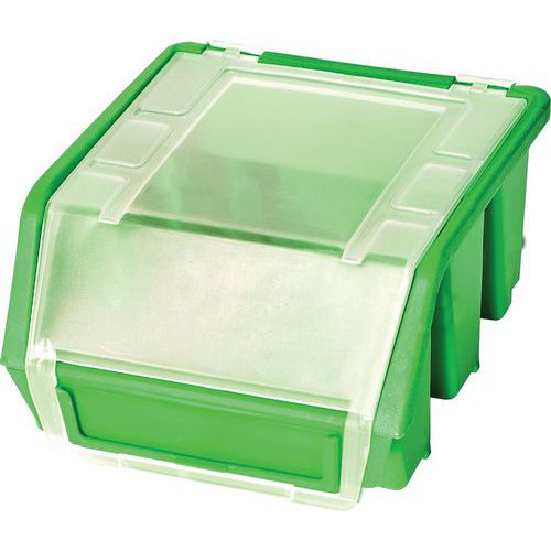 Boîtes en plastique en cinq variantes de couleur avec un support intégré d'étiquettes distinctives pour une meilleure clarté du matériel stocké sur le devant de la boîte.
