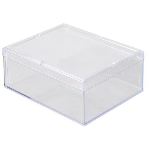Transparence pour parfaite visibilité du produit. Matériau de fabrication résistant aux UV. Boîte superposable pour gain de place. Stable au gerbage grâce à ergots de maintien. Volume intérieur optimisé par parois angle droit. Fabriqué en France Charge maxi (kg) : 0.4