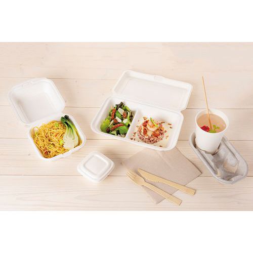 | Intitulé du produit | Boîte lunch en fibre 2 compartiments, Largeur: 160 mm, Hauteur: 60 mm, Longueur: 250 mm, Coloris: Blanc |