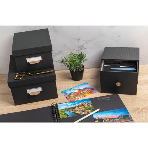 Boîte photos à tiroir OfficeByMe, Matériau: Carton, Coloris: Noir, Longueur hors tout: 134 mm