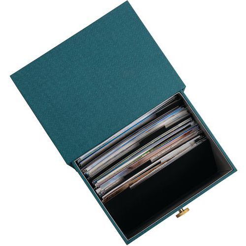 Boîte photos à tiroir OfficeByMe, Matériau: Carton, Coloris: Bleu, Longueur hors tout: 134 mm
