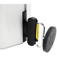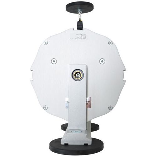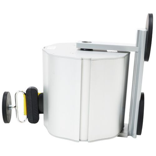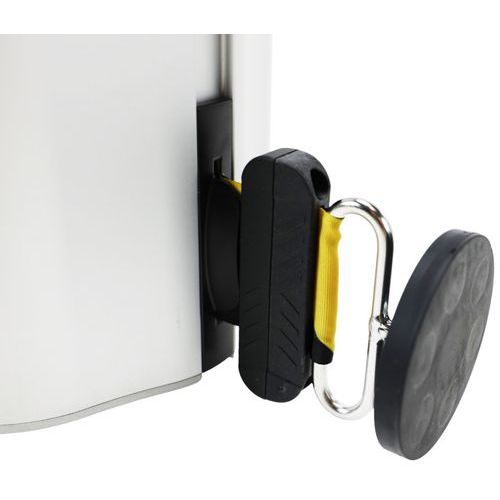 Boîtier à sangle pour une fixation murale magnétique. Réception de la sangle via le récepteur mural aimanté. Orientable pour un balisage dans toutes les directions. Frein centrifuge intégré pour éviter le retour trop rapide de la sangle. Rembobinage freiné en cas de relâchement accidentel.