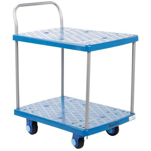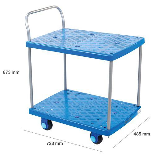 | Intitulé du produit | Chariot plastique 2 plateaux, Force: 150 kg, Hauteur hors tout: 873 mm, Largeur hors tout: 485 mm |