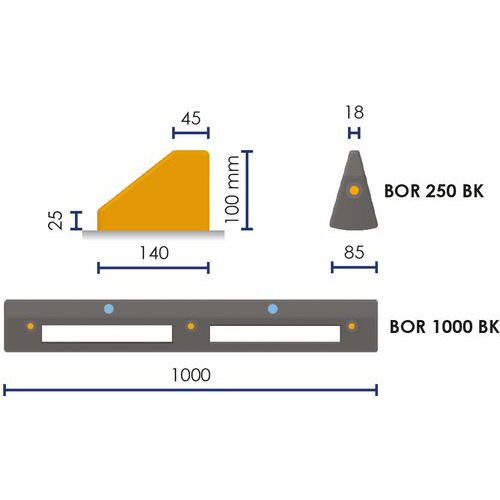 | Intitulé du produit | Bordure de délimitation 3 fixations pour ilot, Largeur hors tout: 1000 mm, Profondeur hors tout: 140 mm |