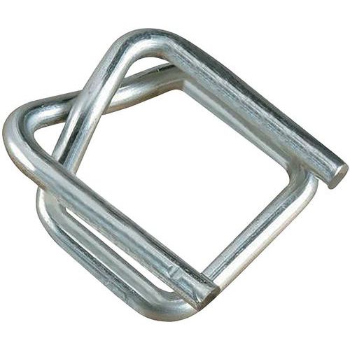 Boucle feuillard en métal adaptée aux importantes tensions du feuillard textile. Résistantes, les boucles maintiennent très bien le cerclage. Utilisation facile. Garantie client : 10 ans