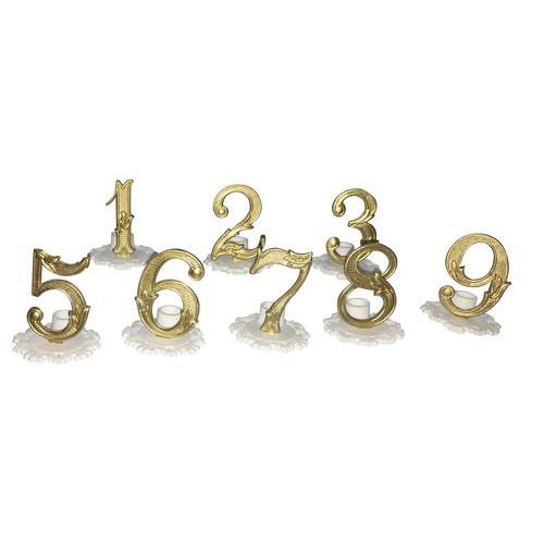 Bougies blanches avec support plastique blanc et chiffre or.