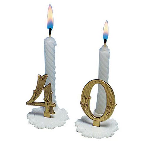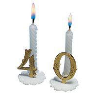 Bougies blanches avec support plastique blanc et chiffre or.