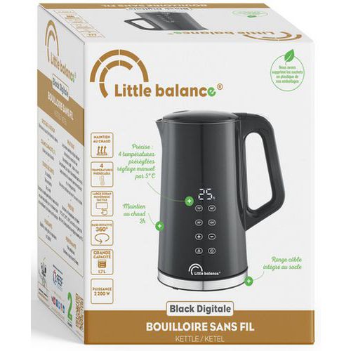 | Intitulé du produit | Bouilloire sans fil, Coloris: Noir, Largeur: 17.8 cm, Profondeur: 22 cm, Hauteur: 21.2 cm, Puissance: 2200 W |