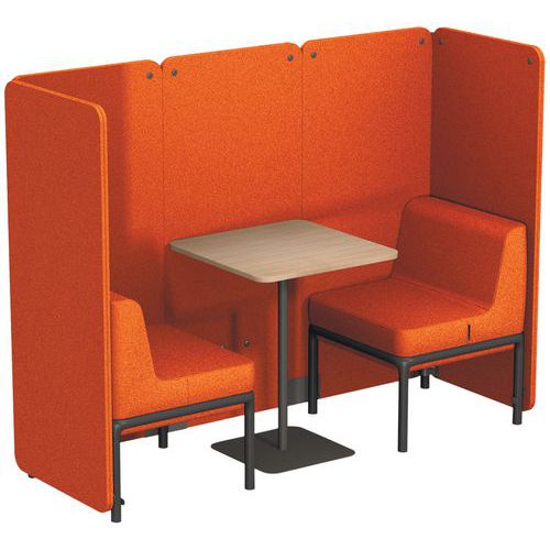 Composée de 2 chauffeuses droites, 5 cloisons et 1 table