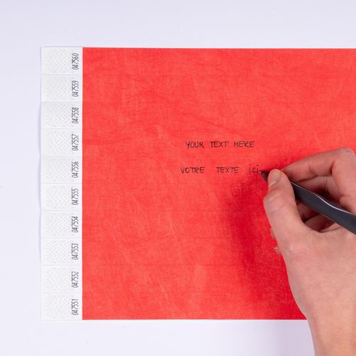 Bracelet indéchirable en papier Tyvek, Largeur: 1.9 cm, Coloris: Rouge Bracelet indéchirable en papier Tyvek, Largeur: 1.9 cm, Coloris: Rouge