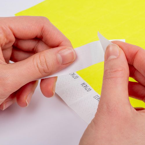 Bracelet en matière Tyvek® est un moyen simple et sûr d'identifier les participants lors de vos événements d'un jour ou d'une soirée. Sa matière résistante en polyéthylène haute densité, douce et indéchirable en font l'accessoire incontournable pour identifier et sécuriser vos événements. Présenté en planche de 10 bracelets, une prédécoupe facilite la distribution auprès des participants. Possède une attache sécurisée. Résistant à l'eau. Fabriqué au RU