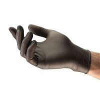 Gants d'examen en nitrile noir pour une protection des mains contre la saleté et une prise en main supérieure.