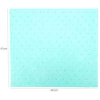 - Le film plastique sur la face inférieure empêche les liquides d’atteindre le sol et garde ainsi la surface sèche tout en agissant comme antidérapant.
