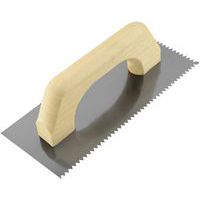 Platoir espagnol manche bois lame inox dentée isocèle - Mondelin. Lame inox dentée 2 cotés. Dents isocèle 6 x 6 mm. Poignée bois.