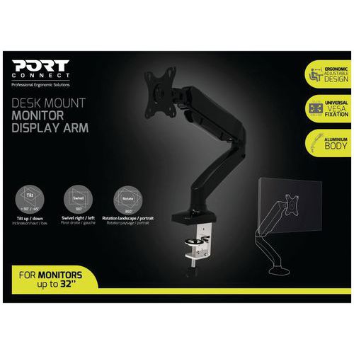 | Intitulé du produit | Bras d'affichage pour moniteur, Type de fixations: Pince, Coloris: Noir, Réglage en inclinaison: oui |