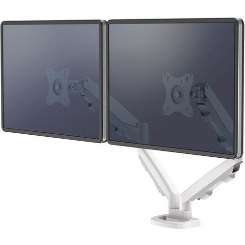 Bras double porte-écran double, Charge maxi: 8 kg, Coloris: Blanc, Réglage en inclinaison: oui