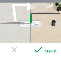 - Le bras double pour écran Leitz Ergo permet un réglage précis de la hauteur pour une position ergonomique idéale.