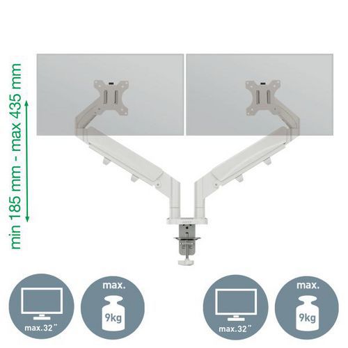 Bras double pour écran, Charge maxi: 9 kg, Coloris: Gris clair, Hauteur mini: 185 mm, Hauteur maxi: 435 mm