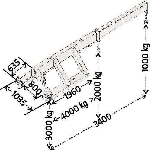 | Intitulé du produit | Bras télescopique pour chariot élévateur à fourches, Force: 3000 kg, Largeur hors tout: 1035 mm |