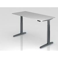 Bureau assis-debout pieds graphite série XBHM-180x80cm. Hauteur réglable électriquement en continu. Capacité de charge 80 kg dynamique, 120 kg statique. Doté d'un interrupteur mémoire. État de livraison démonté avec montage facile.