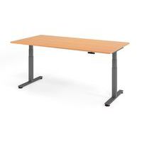 Bureau assis-debout série XDSM - 200x100 cm. Dispose d'un plateau de table. Bureau à rebord renforcé monté à droite ou gauche. Hauteur de travail de 63,5 à 128,5cm. Réglage électrique progressif de la hauteur.