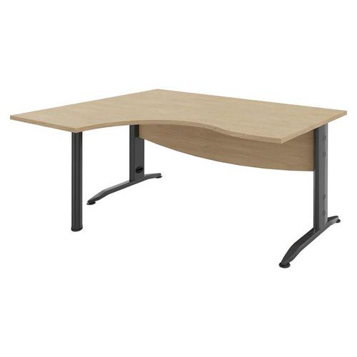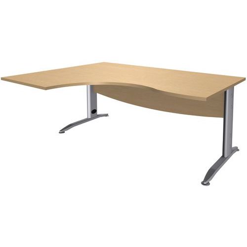 Plateau panneau de particules revêtu mélaminé Equipé d'un voile de fond en aggloméré épaisseur 16 mm de forme courbe Piètement métal avec vérins de réglage. A compléter côté retour d'1 pied de renfort ou d'1 caisson hauteur bureau profondeur 60 cm. Equipé d'un voile de fond en aggloméré épaisseur 16 mm de forme courbe Livré prêt à monter avec notice.
