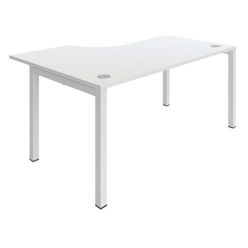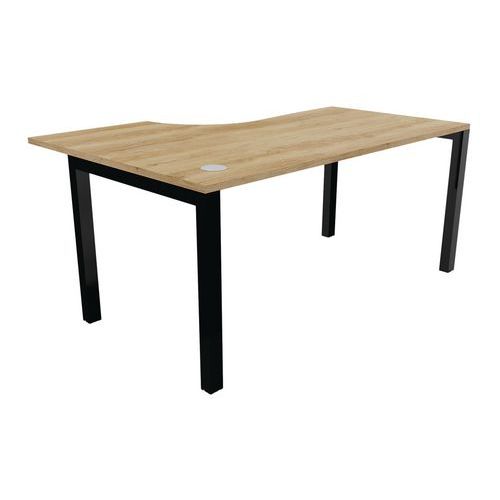 Bureau asymétrique Astro Arche avec piétement en métal pour plus de solidité Plateau équipé d'obturateurs Ø 80 mm pour le passage de câbles Chants droits antichocs épaisseur 2 mm. Pieds arche métallique finition époxy de section 50 x 50 mm. Plateau hauteur 72 cm en panneau de particules bois haute densité épaisseur 25 mm, revêtu mélaminé. Structure métal avec poutre autoportante. Vérins de réglage d'aplomb. Livré prêt à monter avec notice. Montage : À monter Garantie client : 10 ans