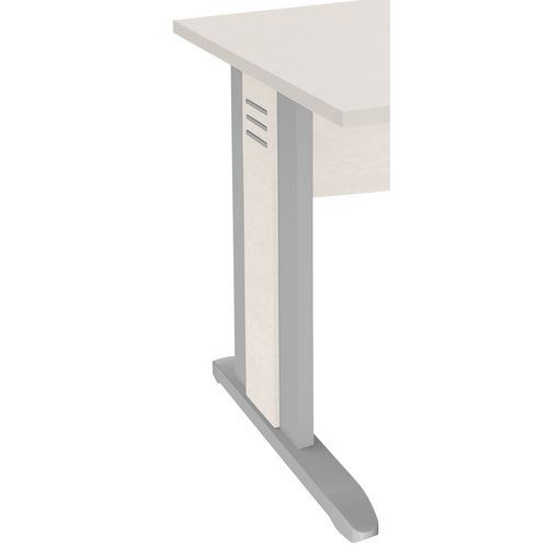 Bureau asymétrique Quatuor pieds L Structure panneau de particules revêtu mélaminé décor. Pieds L base bois avec insert bois sérigraphie alu. Piètement équipé de vérins de réglage d'aplomb. Retour profondeur 120 cm à gauche ou à droite. A compléter d'un pied de renfort, d'un plateau d'extension avec pieds ou d'un caisson hauteur bureau vendus séparément. Livré prêt à monter avec notice.