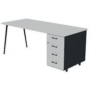 Bureau avec plateau 140x80 cm avec caisson HB 4 tiroirs Solal, Largeur hors tout: 182 cm