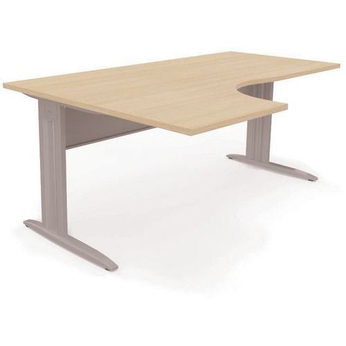 Plan compact de 90 degrés prépercé permettant de pouvoir positionner 2 obturateurs optionnels pour le passage des câbles électriques. Piétement décentré facilite la mobilité de l'utilisateur. Meilleure stabilité grâce au fond métallique. Fond perforé pour le passage des câbles. Ergonomie optimale à l'utilisateur grâce au centre arrondi et une grande surface de travail.