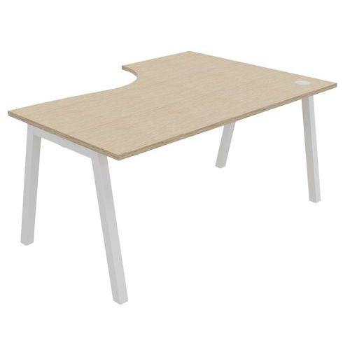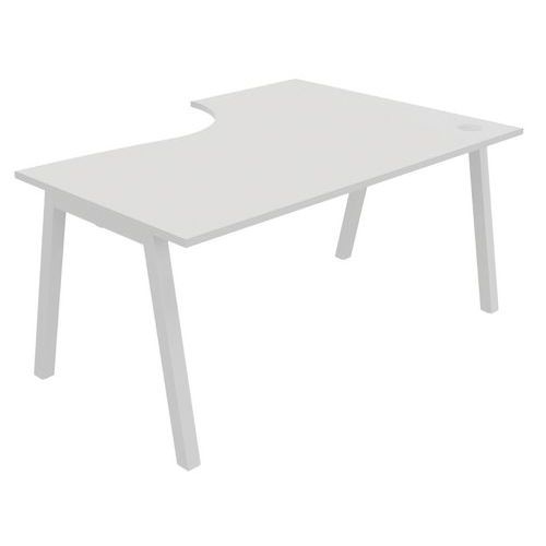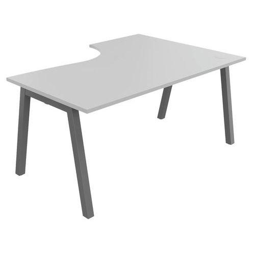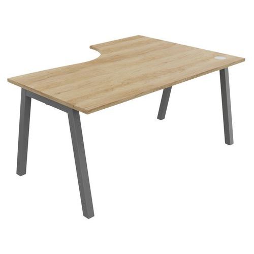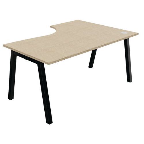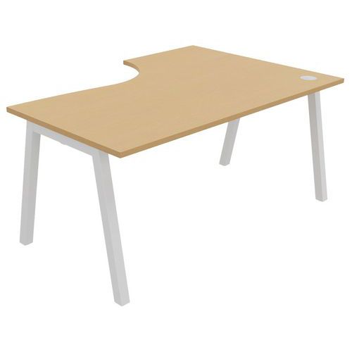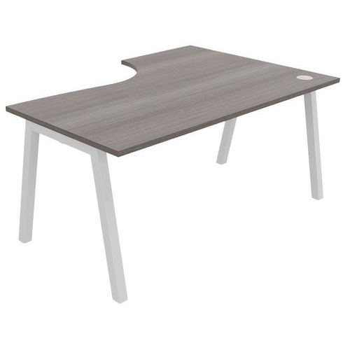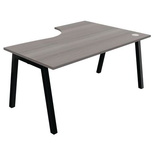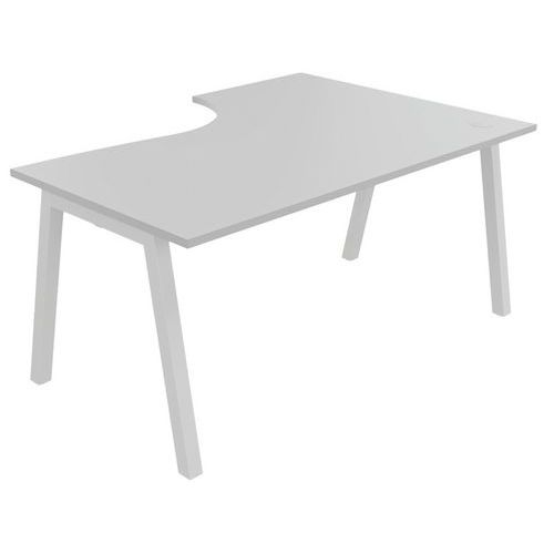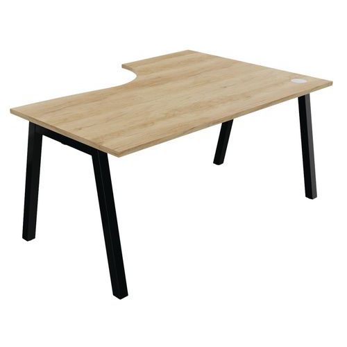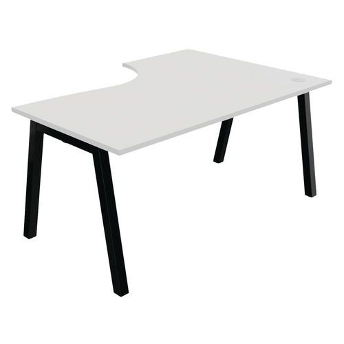 Plateau mélaminé ép. 25 mm équipé d'un obturateur passe-câble Chant ABS antichoc 2 mm Piétement métallique en arche composé de pieds carrés de section 50 x 50 mm obliques, finition époxy laqué. Vérins de stabilisation pour compenser les défauts de planéité du sol (course de réglage 10 mm)