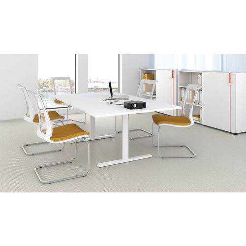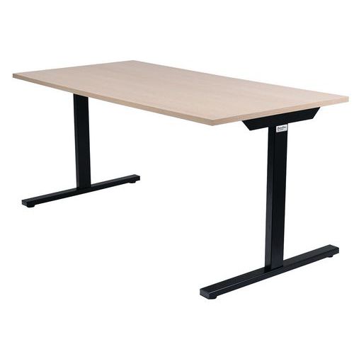 Bureau droit avec pieds en T Plateau mélaminé d'une épaisseur de 25mm avec chants ABS de 2mm. Pied métal de 796x60x30 mm