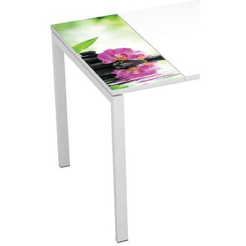 Bureau droit 140x80cm avec plateau Décor Easy Office. Structure métallique pour une parfaite rigidité. Poutres télescopiques en métal. Chants PVC épaisseur 2 mm. Pied métal section 50 x 30 mm. Revêtu peinture époxy coloris blanc. Un bureau personnalisé et vite monté.