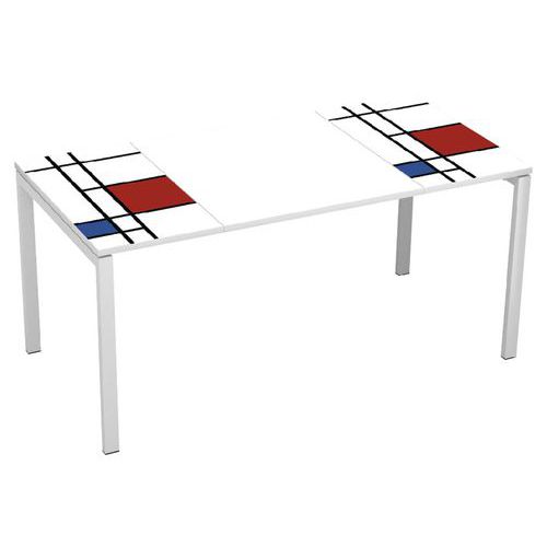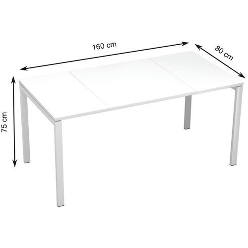 Bureau droit 160x80cm avec plateau Décor Easy Office. Structure métallique pour une parfaite rigidité. Poutres télescopiques en métal. Chants PVC épaisseur 2 mm. Pied métal section 50 x 30 mm. Revêtu peinture époxy coloris blanc. Un bureau personnalisé et vite monté.