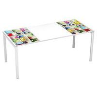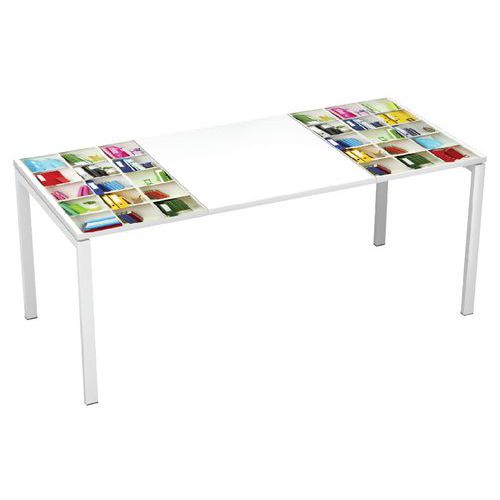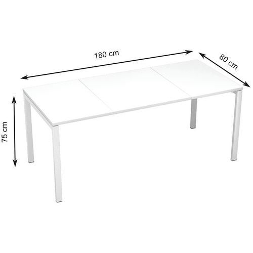 Structure métallique pour une parfaite rigidité Poutres télescopiques en métal Chants PVC épaisseur 2 mm Pied métal section 50 x 30 mm Revêtu peinture époxy coloris blanc Un bureau personnalisé et vite monté