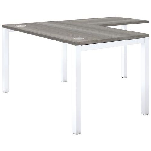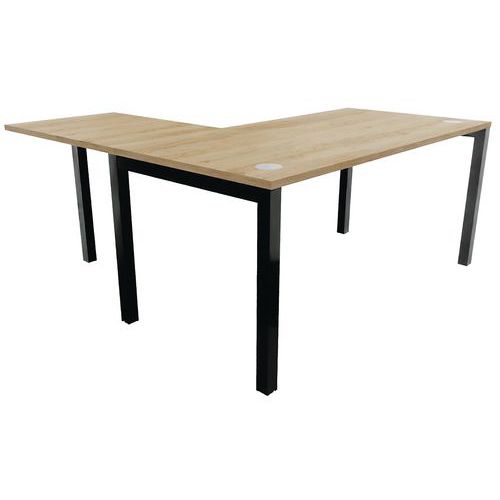 Bureau droit avec extension Astro Arche structure métal avec poutre autoportante pour plus de solidité. Plateau panneau de particules bois haute densité épaisseur 25 mm, revêtu mélaminé. Chants ABS antichocs épaisseur 2 mm. Plateau équipé de 2 obturateurs Ø 80 mm pour le passage de câbles. Retour 80 x 60 cm positionnable à droite ou à gauche. Pieds arche métallique finition époxy de section 50 x 50 mm. Vérins de réglage d'aplomb. Livré prêt à monter avec notice.
