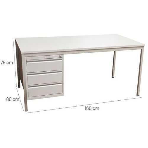 Bureau droit avec caisson Base-Line, Type de piétement: En I, Montage: À monter, Largeur hors tout: 160 cm