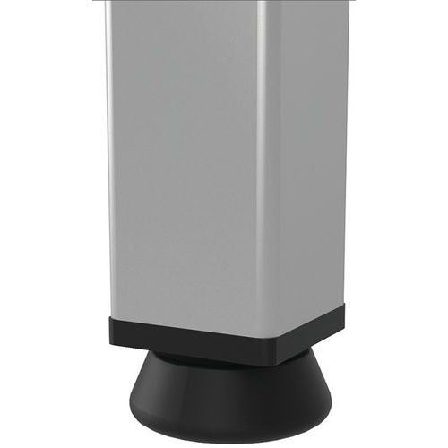 Bureau robuste et intemporel. Plateau antireflet haute résistance (ép.25 mm). Piétements équipés de vérins de réglage. Cadre autoporteur et voile de fond métallique.