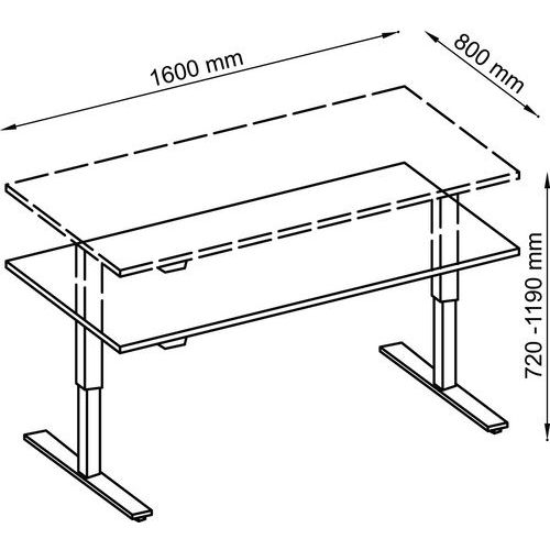 Bureau droit ergonomique grâce à la hauteur réglable +/- 5 mm par interrupteur. Deux moteurs intégrés dans les pieds. Goulotte de câble inclus. Idéal pour travailler tout en vous protégeant des problèmes de dos