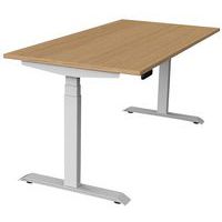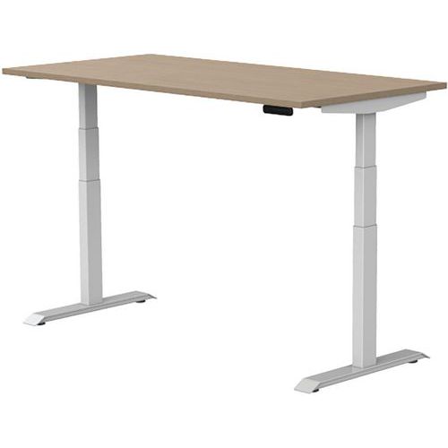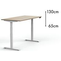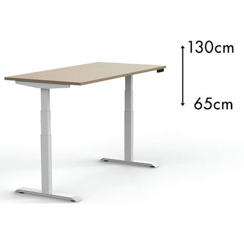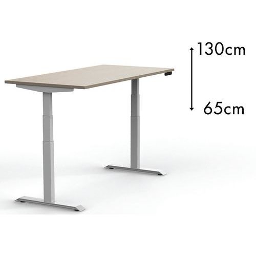 La table assis-debout de Venta T est réglable en hauteur par un clavier (65 – 130 cm). Le clavier est installé de série sur le côté droit de votre table haute. Système à clavier (flèche haut/flèche bas), avec 3 positions en mémoire. La table est munie d’un châssis soudé avec des poutres télescopiques, 2 supports de plateau, 2 piétements en T et 1 plateau. Sur la structure solide est fixée une tablette en aggloméré mélaminé de 25 mm. Toutes les parties sont arrondies d’un rayon pour éviter que l’utilisateur ne se blesse. Compatible avec la gamme de bureau Venta.